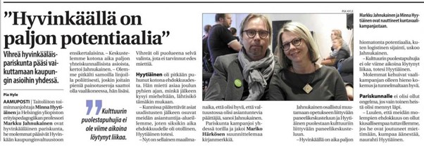 Aamuposti siteerasi Korpelaa vihreän vyöryn saavuttua kaupunkiin 10.4.2017.