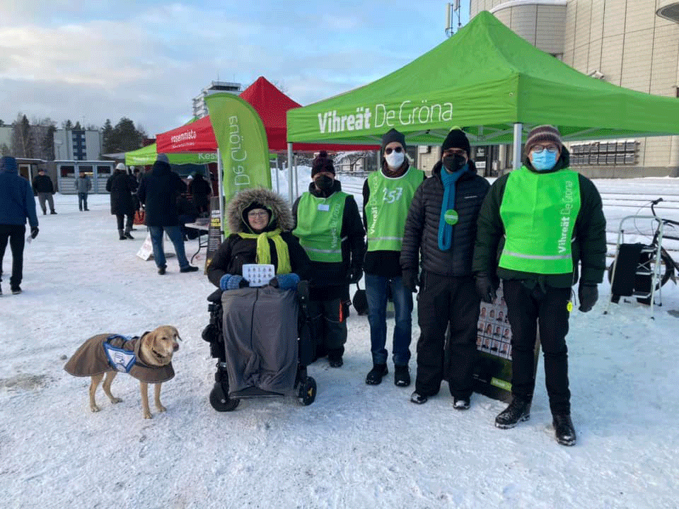 Vaalikentillä vetoapua saimme mm. kansanedustajavierailta Johanna Karimäeltä ja Jani Toivolalta. Toritapahtumien lisäksi järjestimme mm. Vihreät – De Party vaalibileet.